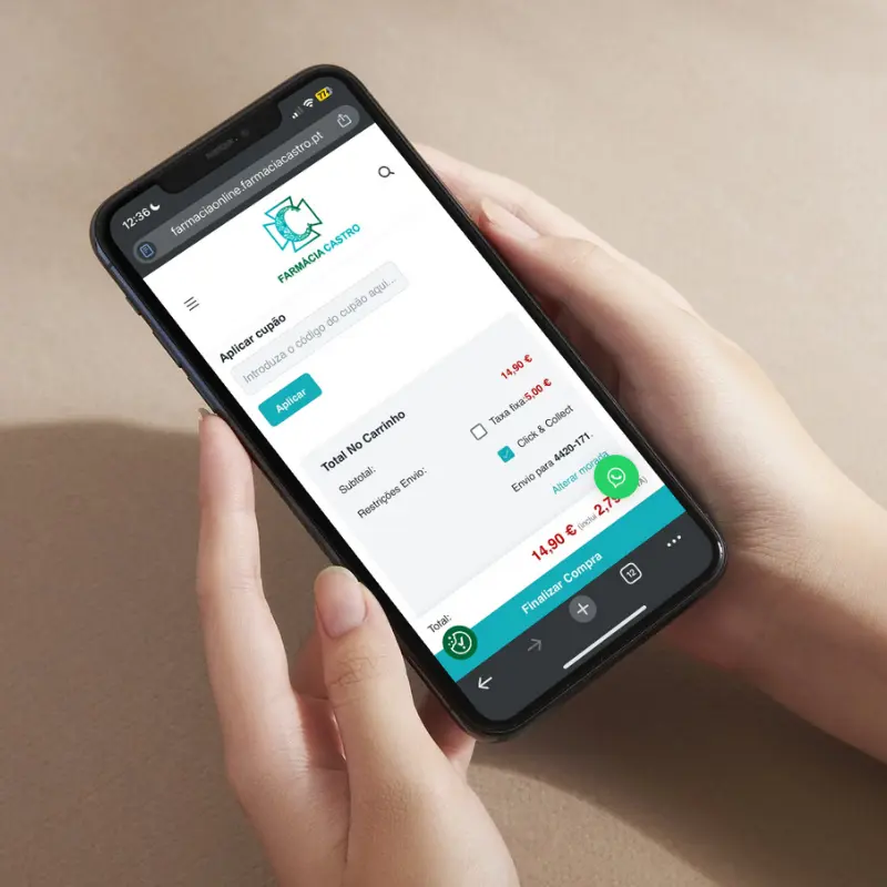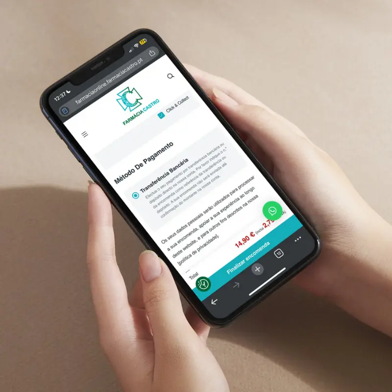 No final da sua compra, escolha a opção de levantamento em farmácia. Assim, a sua encomenda será preparada com antecedência e estará pronta para recolha rapidamente.
